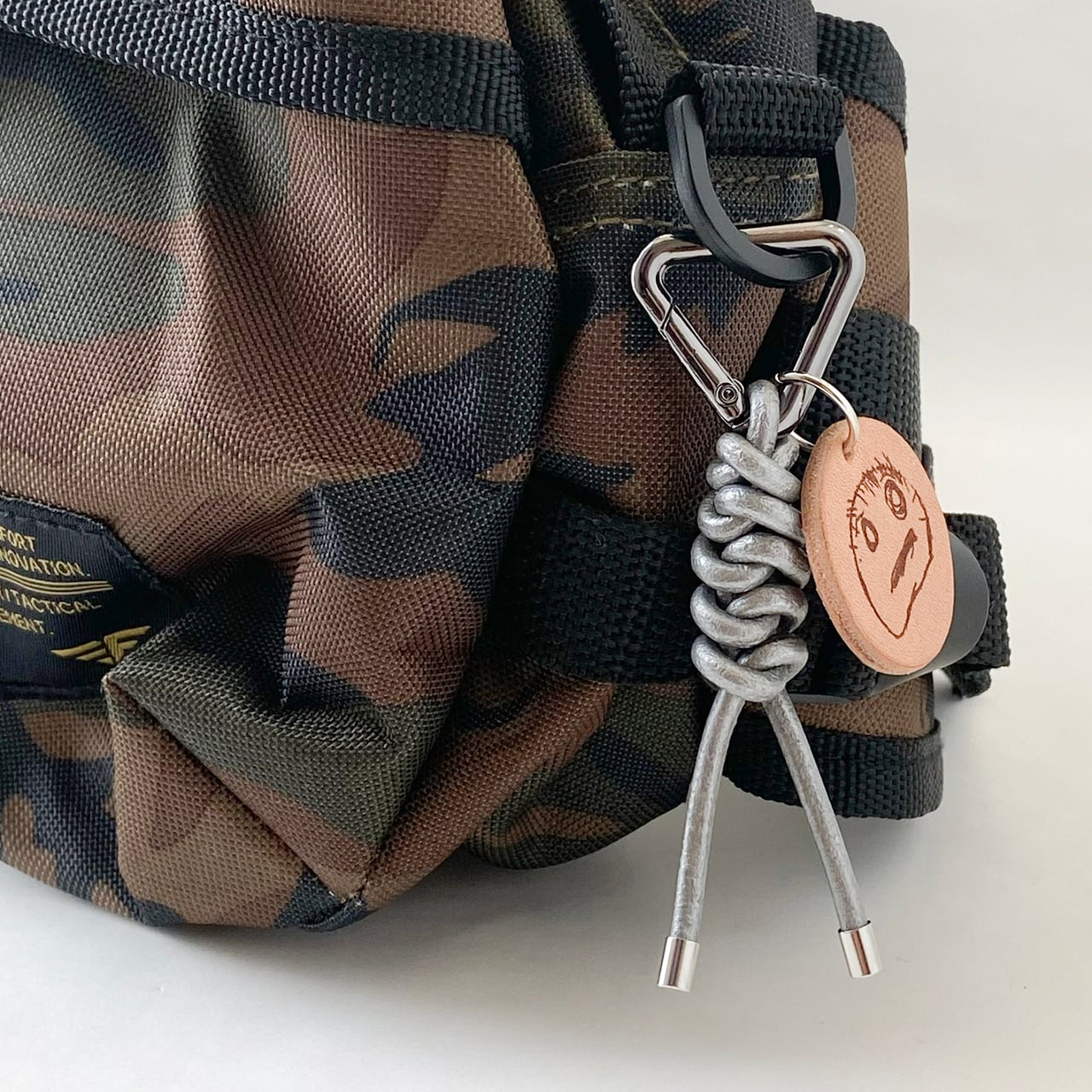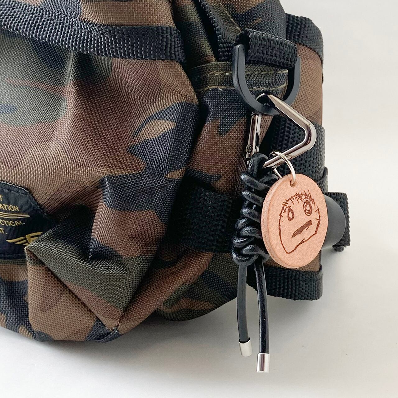 三角カラビナ付きなので、鞄などに簡単に付けることができます!