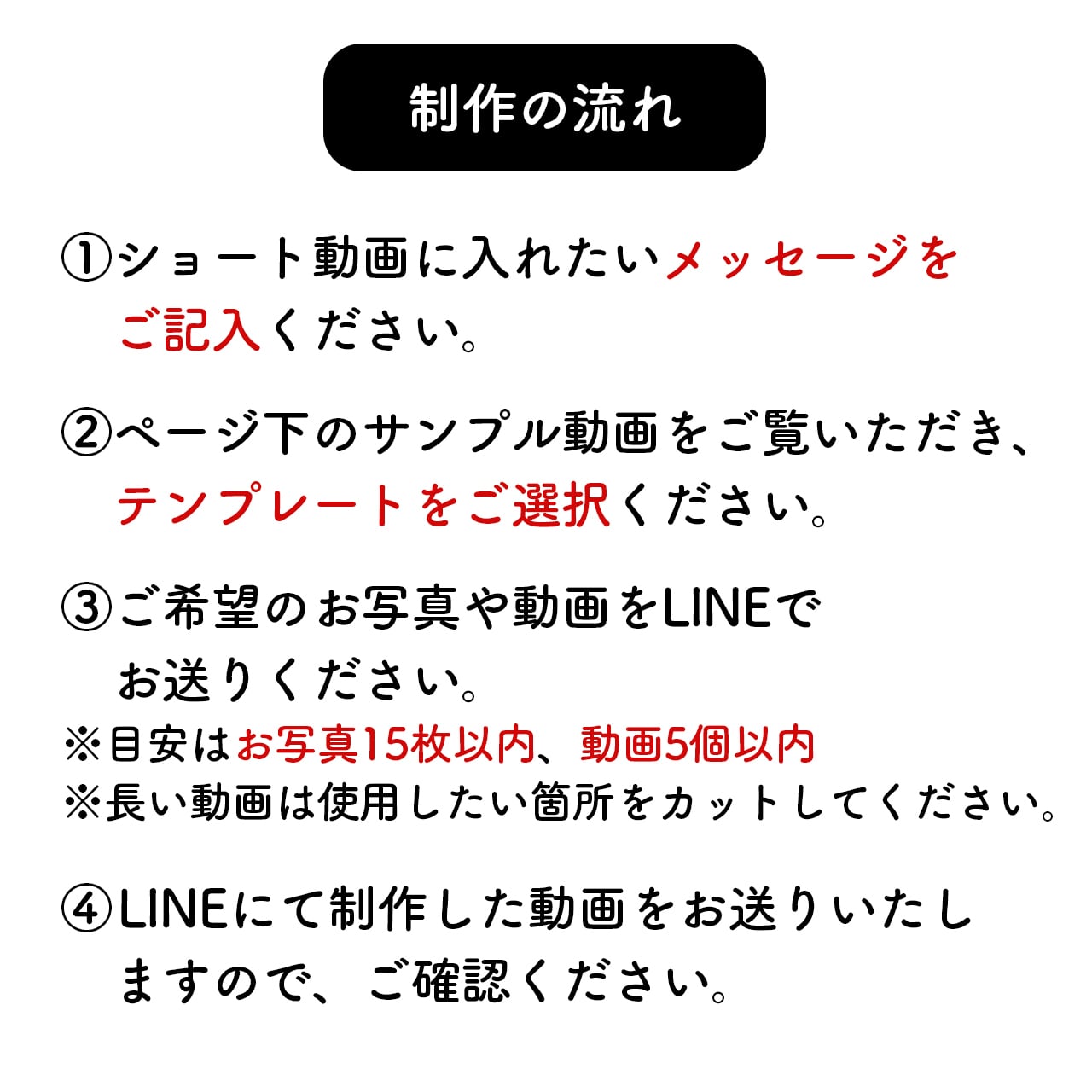 ◉ご希望のお写真や動画をLINEでお送りください。