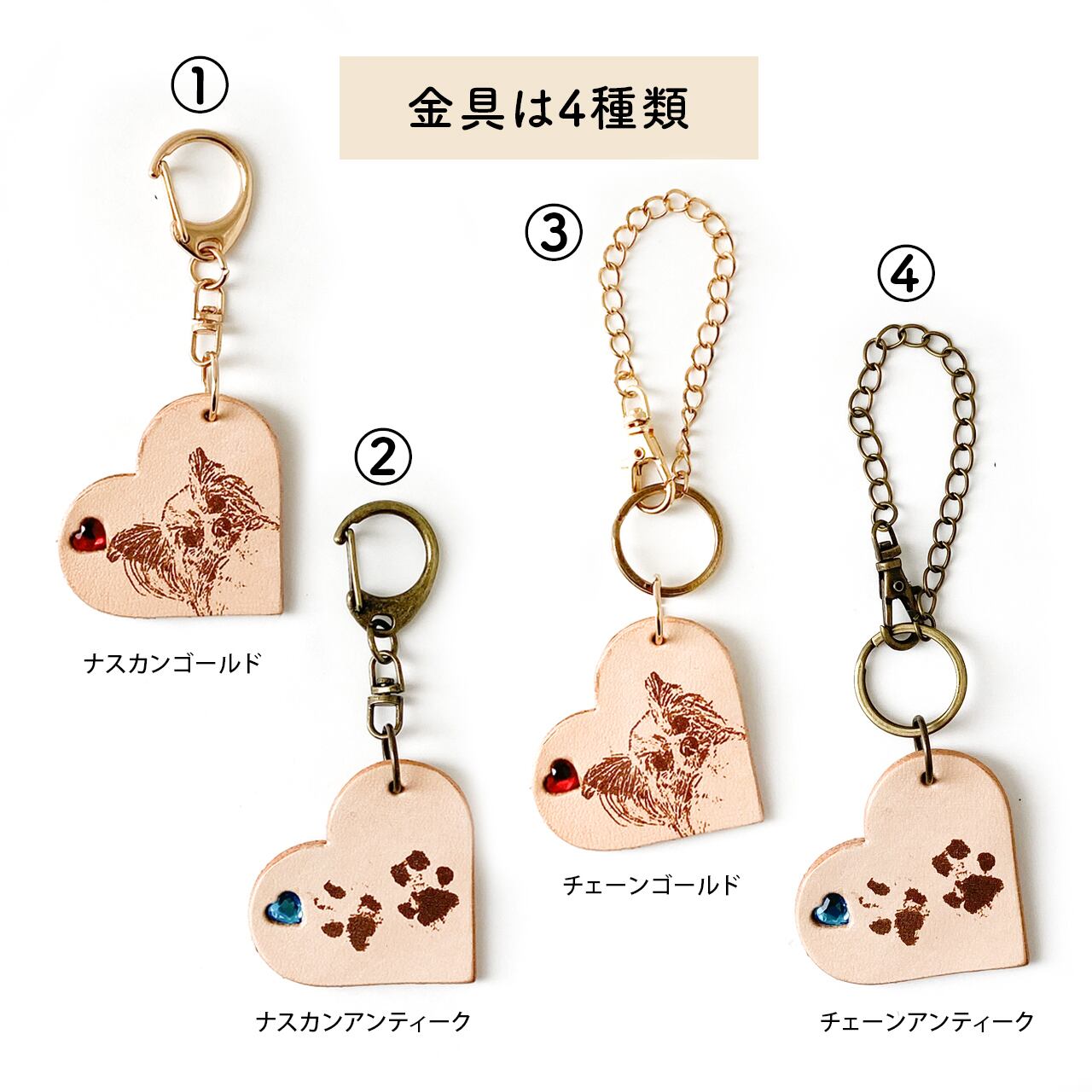 キーホルダーの金具は4種類あります。