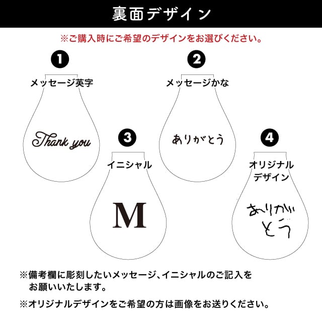 ◉裏面はメッセージやお名前、イニシャルなどの他、