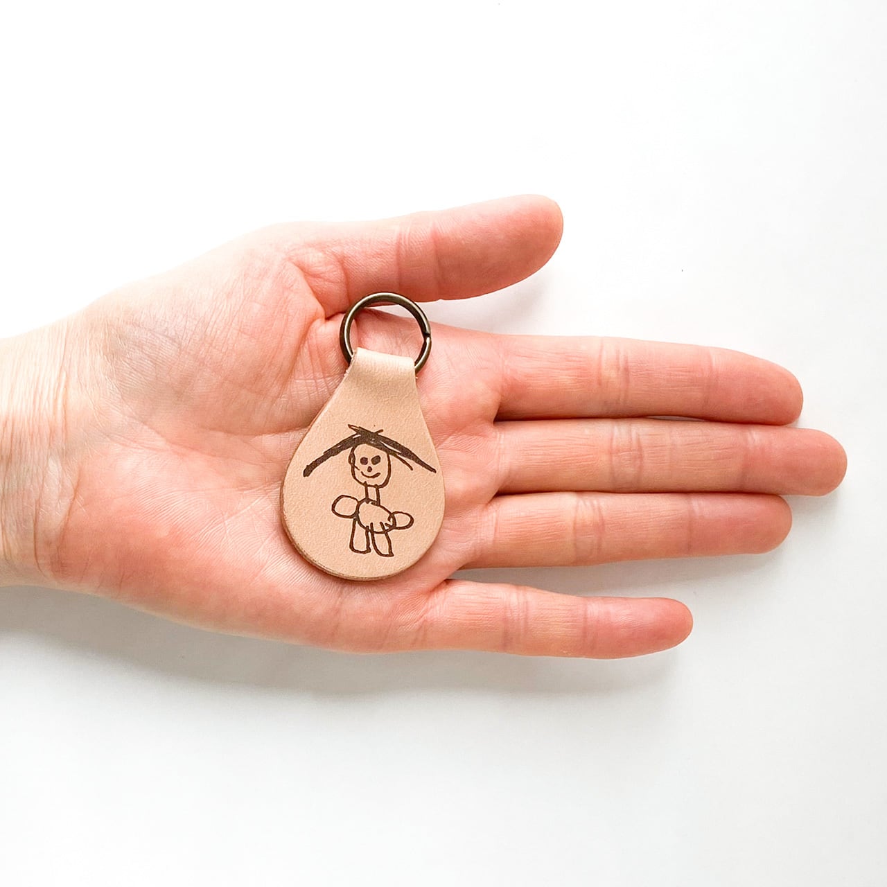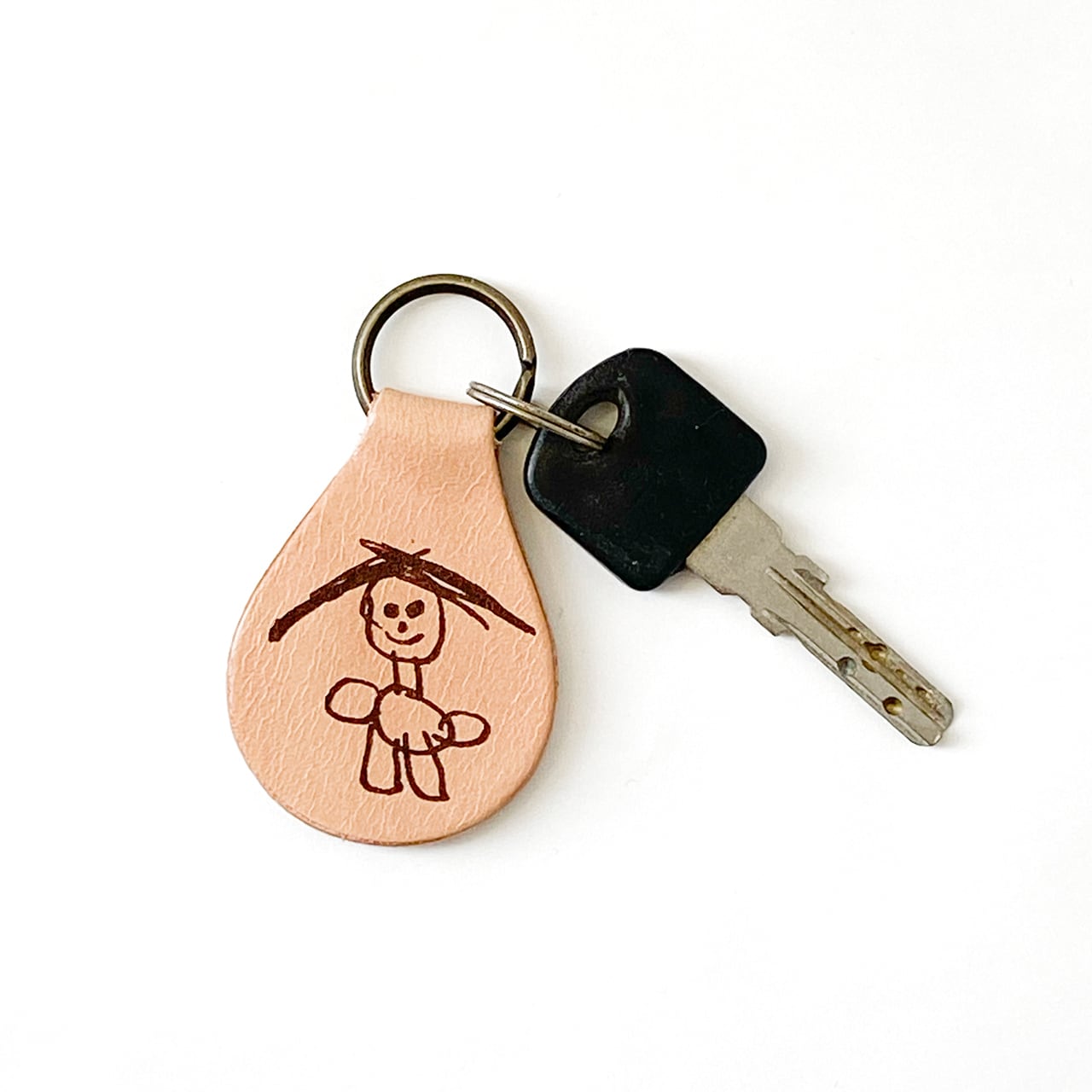 子供の絵入り レザーキーホルダー